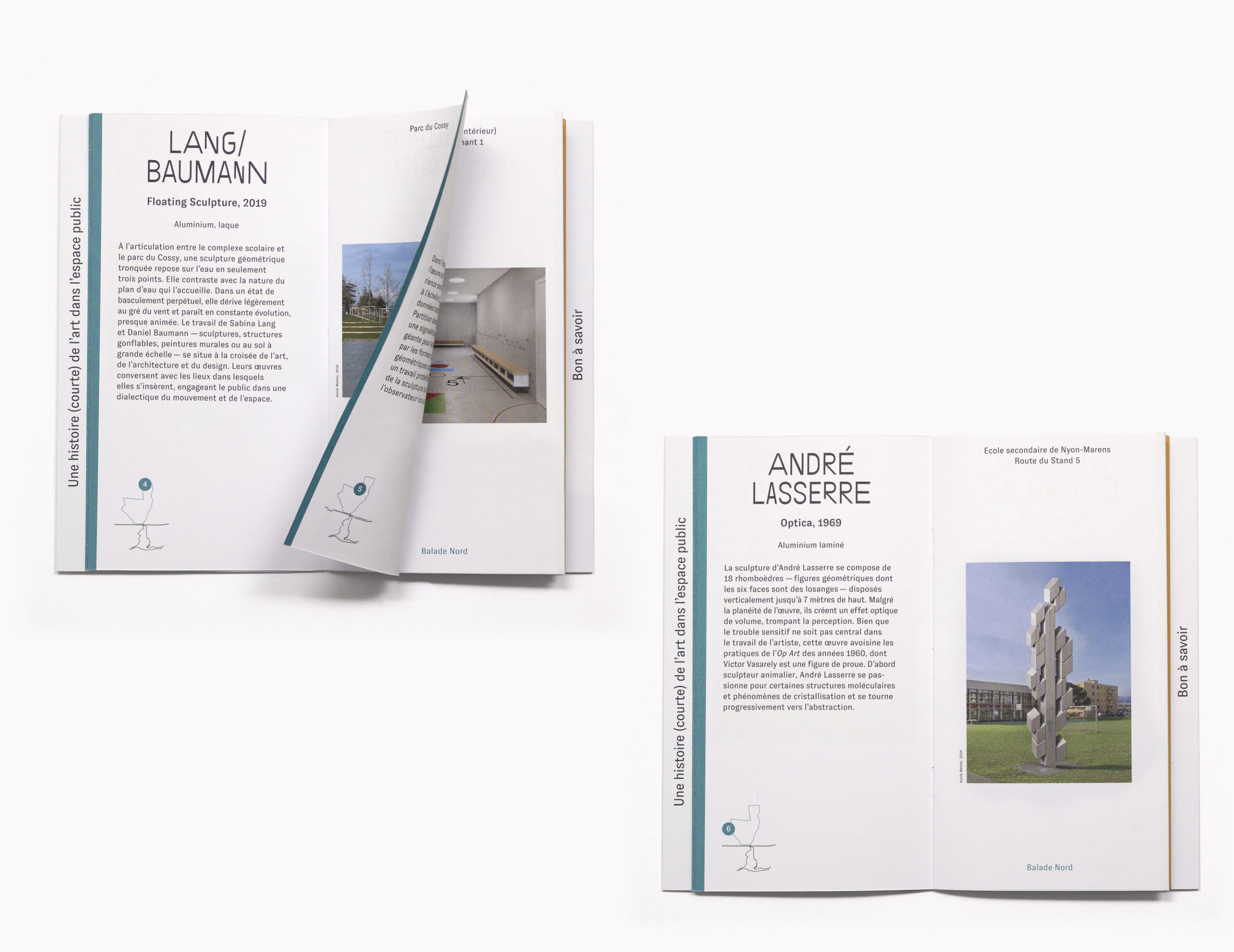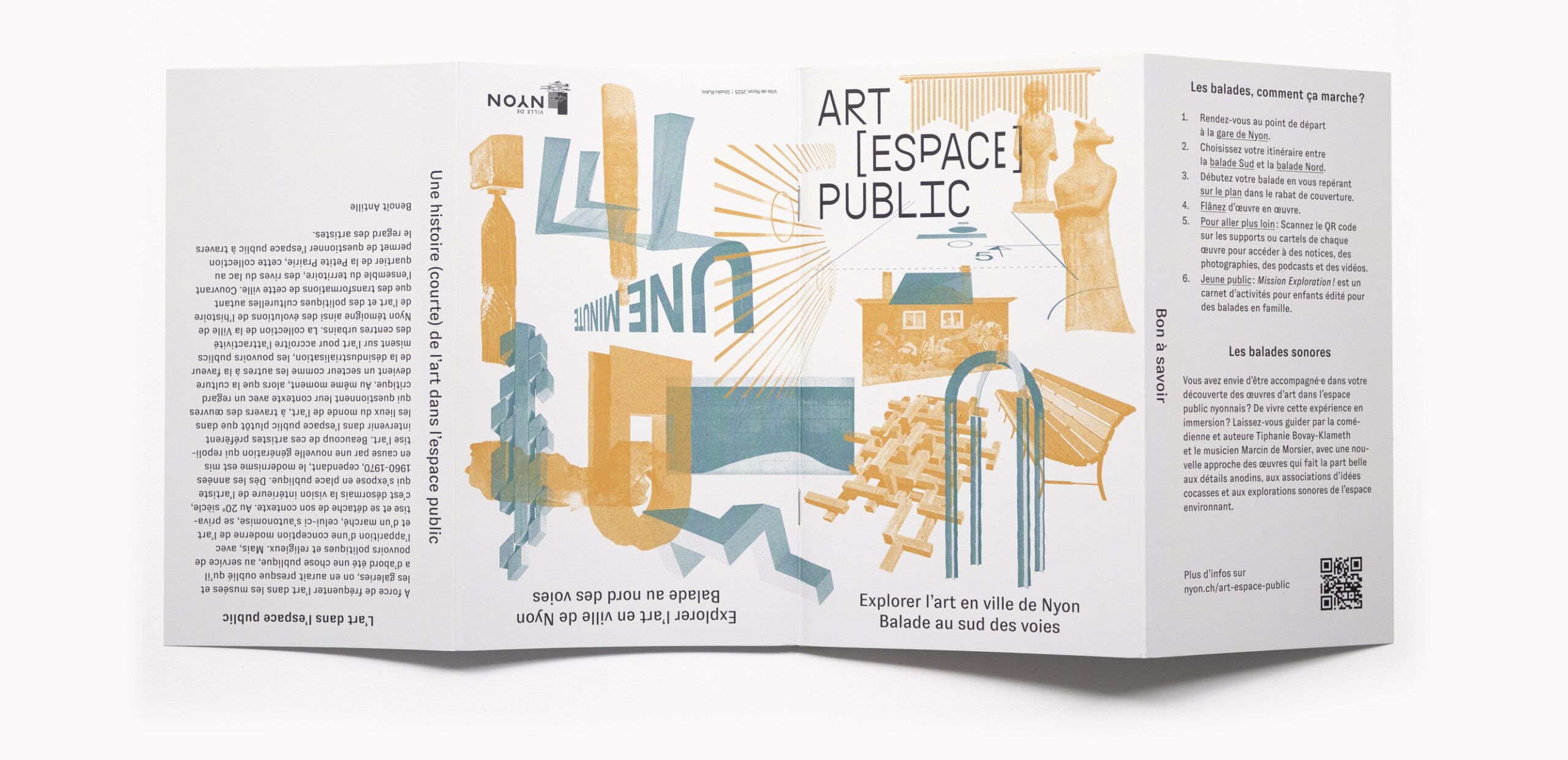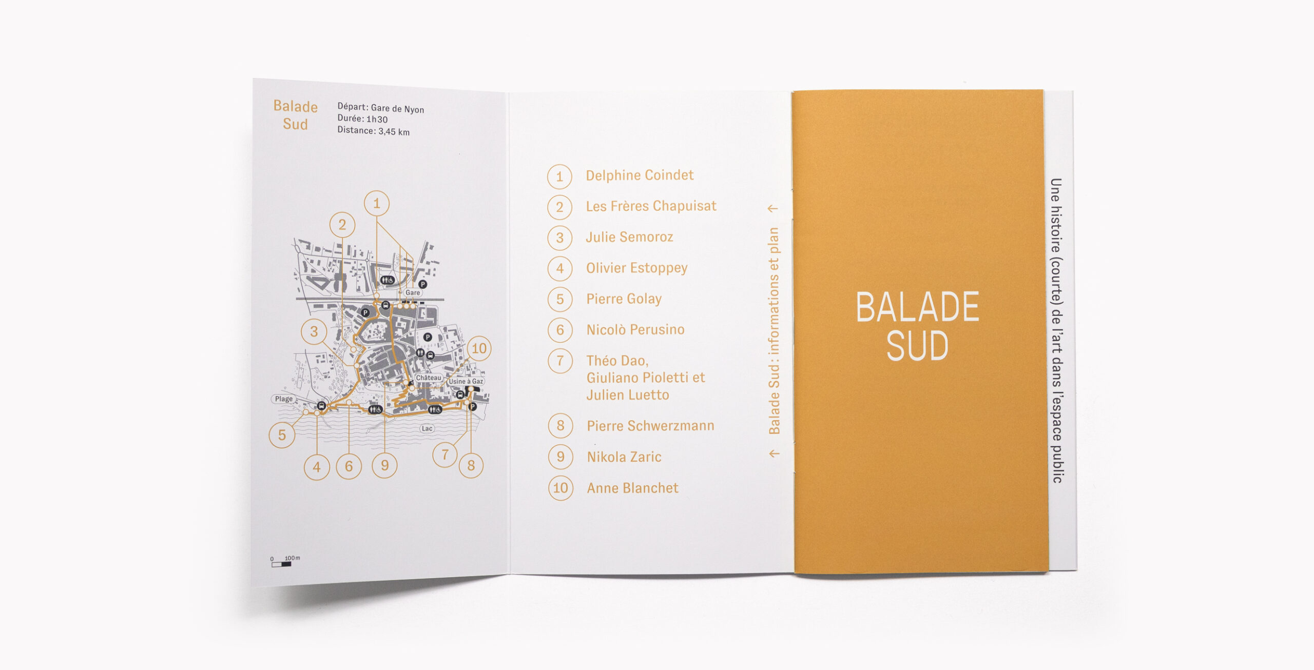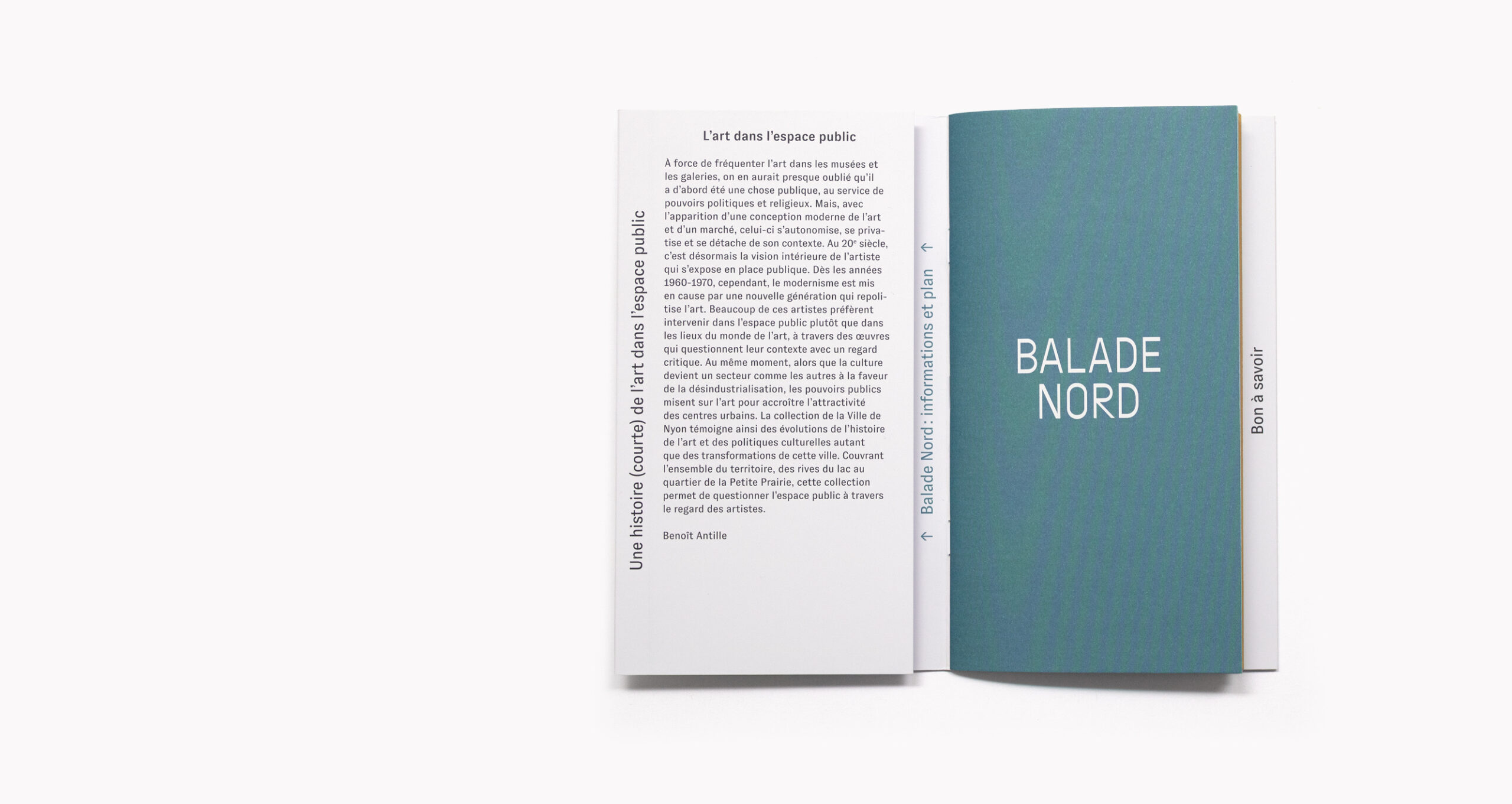 Artistic guide presenting two walks (North/South) in Nyon, and an introduction to the works of art acquired by the city.